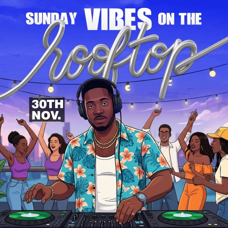 Step into elegance above the skyline as we bring you Vibes on the Rooftop, the ultimate day-to-night celebration of rhythm, style, and culture. From 5:00 PM to 11:00 PM, we’re transforming the rooftop into a vibrant escape filled with smooth sounds, glowing sunsets, and unforgettable energy.